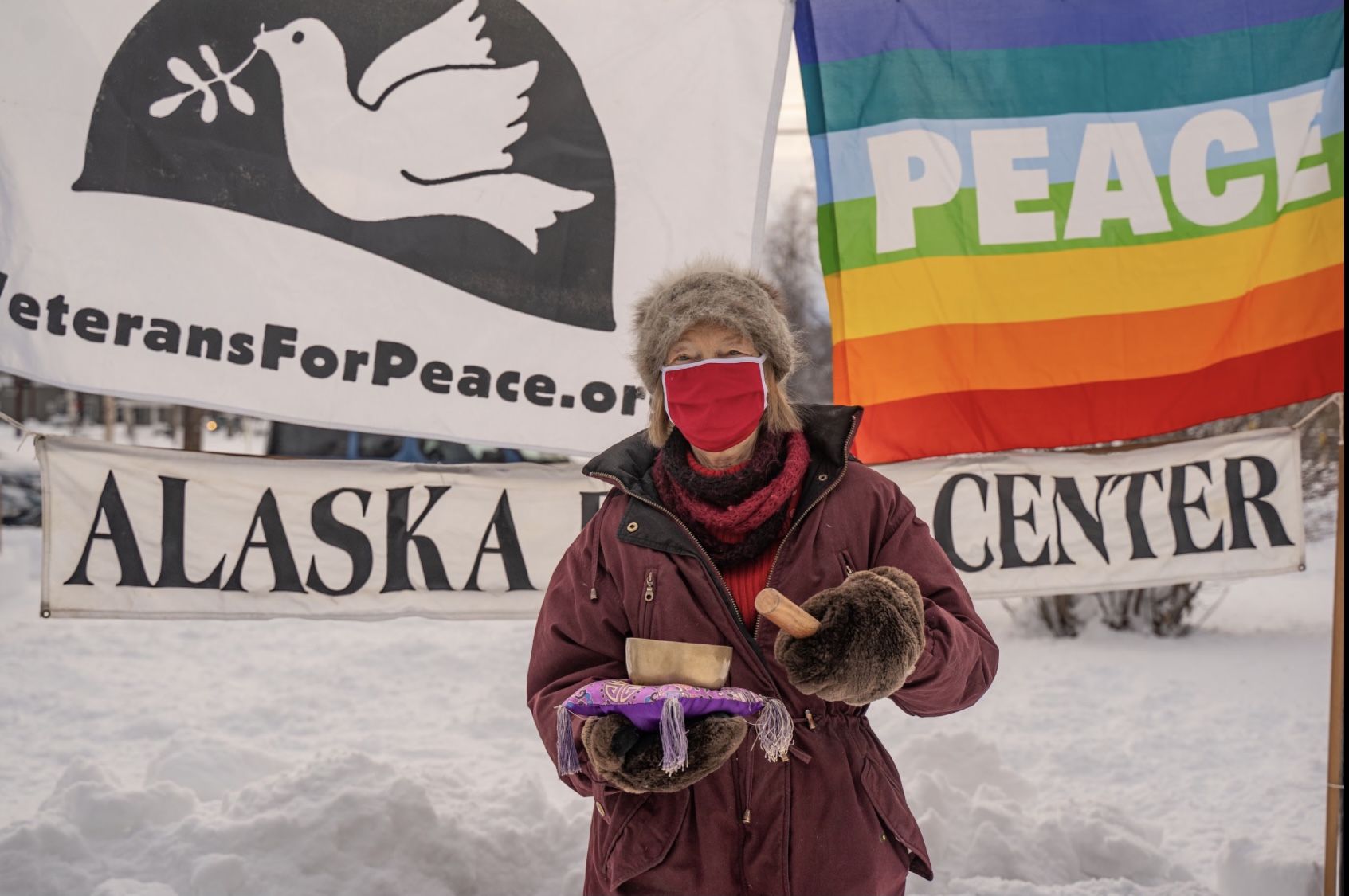According to Heather Koponen, Alaska Peace Center chair, “An example of the impact the sign has had came when a fellow came to the Alaska Peace Center’s annual booth at the 10-day-long Tanana Valley State Fair and proceeded to tell us about the extraordinary human costs incurred by our military budget, including asking us, ‘Did you know that 3% of the U.S. military budget could end starvation on Earth?’