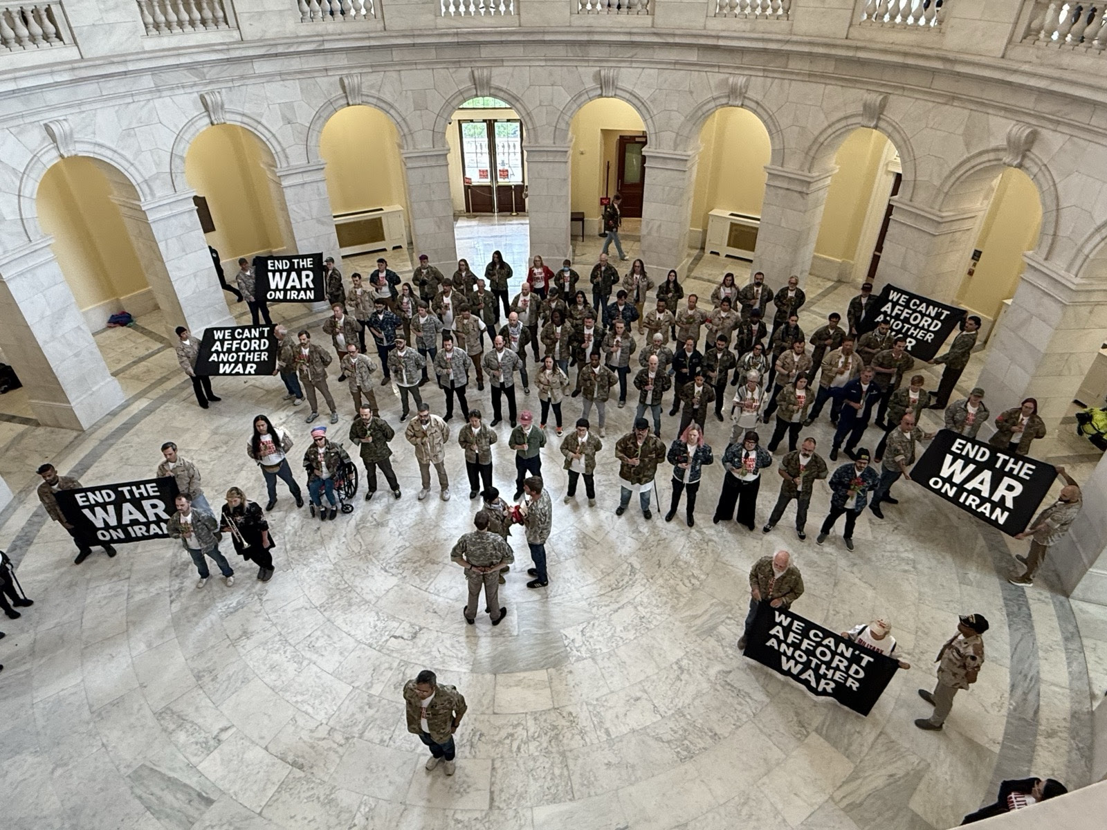 Dear Friend of VFP, 150 veterans and military members occupy the capital rotunda to demand Congress end the war on Iran.
